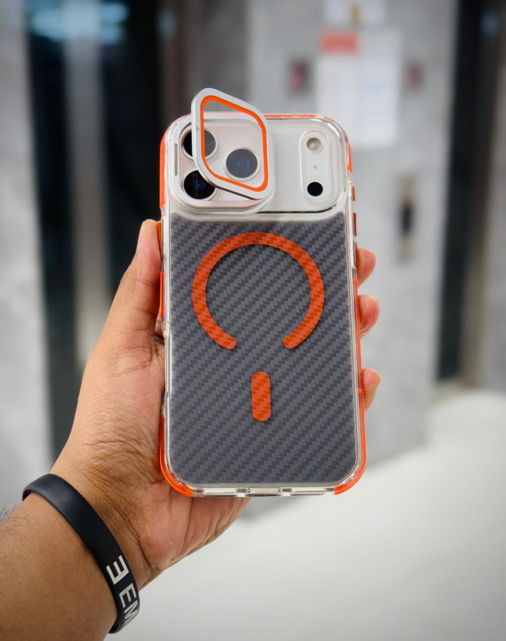 Carbon MagSafe Camera Bumper Case with Metal Kickstand