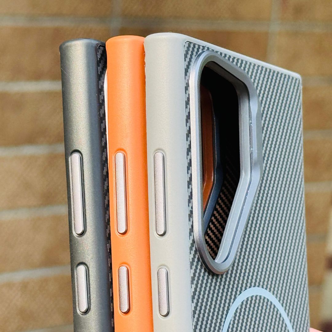 The backplate is crafted from high-quality carbon fiber, giving your phone a clean, modern, and professional appearance. It’s fingerprint-resistant, smudge-proof, and easy to clean. Despite its strength, the case is incredibly slim and adds minimal bulk to your device.
